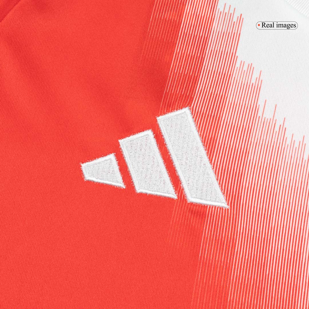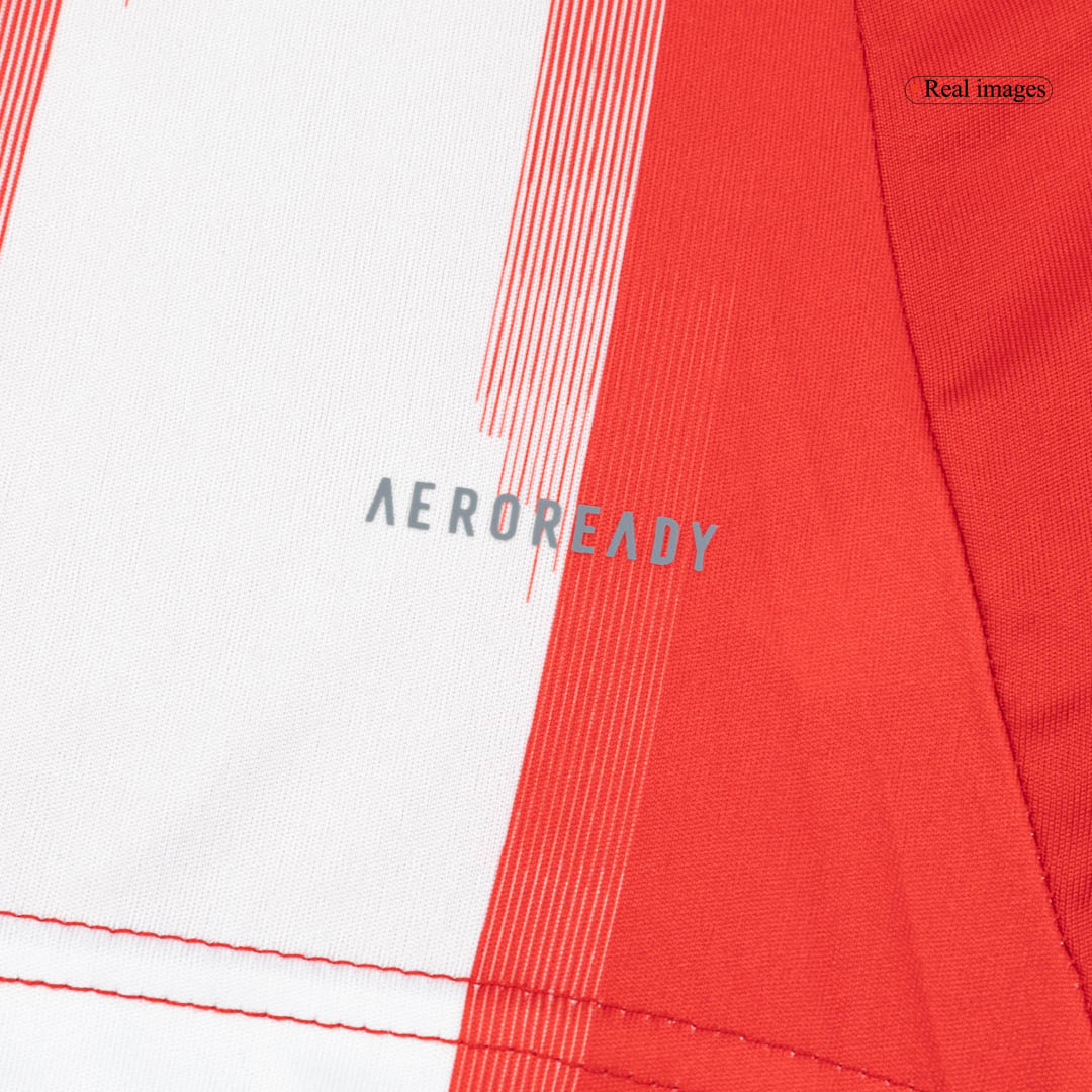 Gefertigt aus der brandneuen Adidas Tiro 25 Vorlage, bietet dieses Bayern München Trikot überlegenen Komfort und Atmungsaktivität auf und neben dem Platz. Das Kit verfügt über einen sauberen weißen Kragen mit "FC Bayern München" geprägt, das Hinzufügen einer einzigartigen Note für treue Fans. Adidas verwendet Weiß für alle Logos und Details, während das kultige Bayern-Wappen stolz in voller Farbe bleibt. Um den Look zu vervollständigen, enthält das Set klassische rote Shorts und Stutzen.