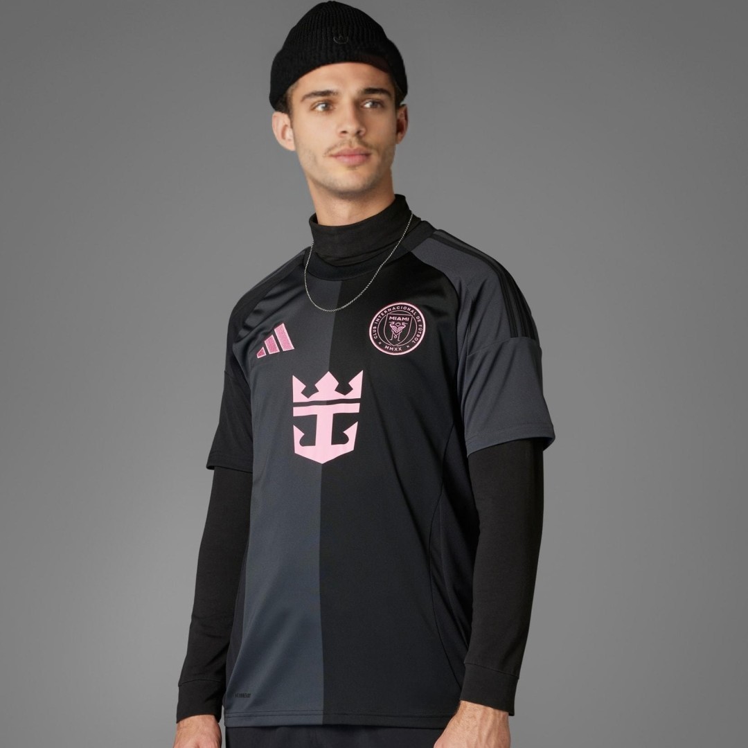 Details of the jersey: Description about the Inter Miami Away Soccer jersey: Inter Miami CF Away Soccer Jersey 2025 OUT NOW! Inter Miami CF jersey is designed with black as main color like the 2024 season, then complementing with gray and pink accents. The 2025 Inter Miami CF jersey celebrates the vibrant South Florida culture and is an Inter Miami CF jersey that reflects the club’s ambitions. What’s more, the Inter Miami CF camiseta futbol is designed into half gray and half black, and the iconic three-stripes on the shoulder are also switched along with the half-and half color scheme. We can see the motto ‘FREE TO DREAM’ is embroidered on the back of Inter Miami CF camiseta futbol. It’s time to show your support for the iconic football club with this stylish and high-quality Inter Miami CF jersey. The whole Inter Miami CF kit is completed with matching white shorts and socks.