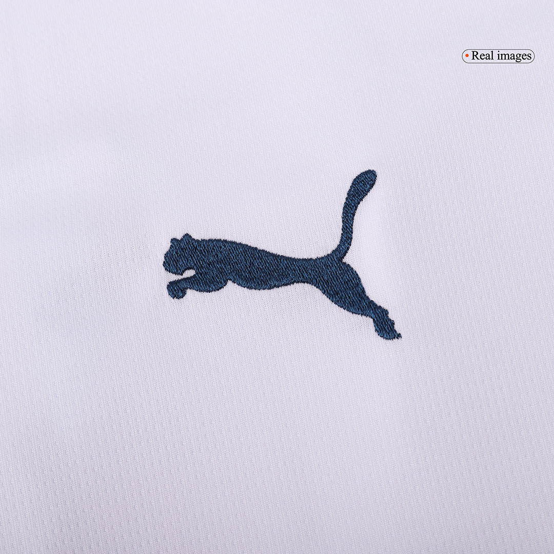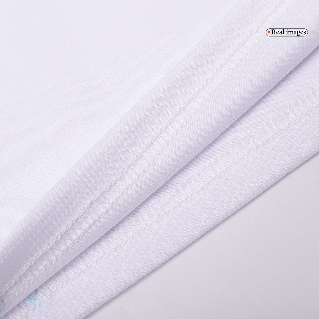 Description about the Marseille jersey: The new 2024-2025 football shirt blends OM’s traditional white and sky blue hues with navy accents, creating a classic yet modern look. What sets the24-25 home Marseille jerseyapart are the distinctive crest and panels that contribute to Marseille jersey’s uniqueness. Notably, the side and back panels of Marseille jersey showcase an abstract flag design, symbolizing the flags waving proudly in the stadium during each match. The motifs adorning the sides serve as a visual representation of the vibrant atmosphere created by the fans. A special touch is the “Portez” inscription on the collar, a heartfelt tribute to the supporters who are revered as the 12th player here at OM, embodying a spirit of unity and passion unlike any other.