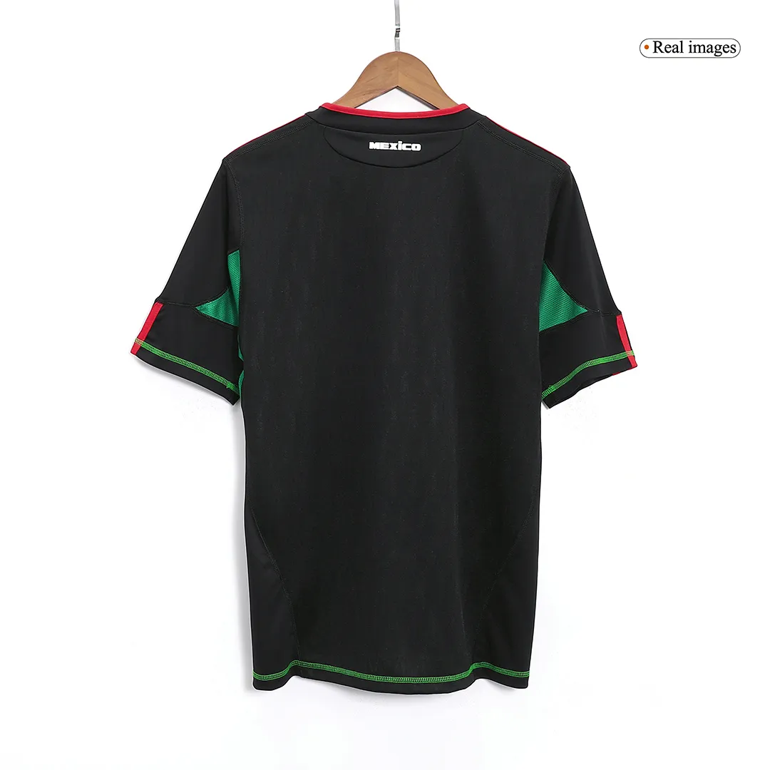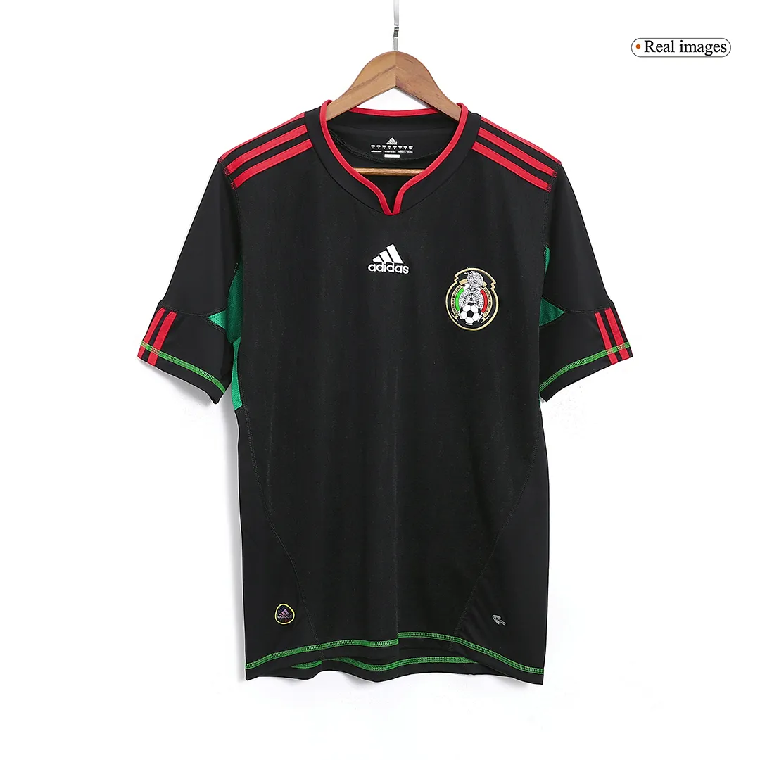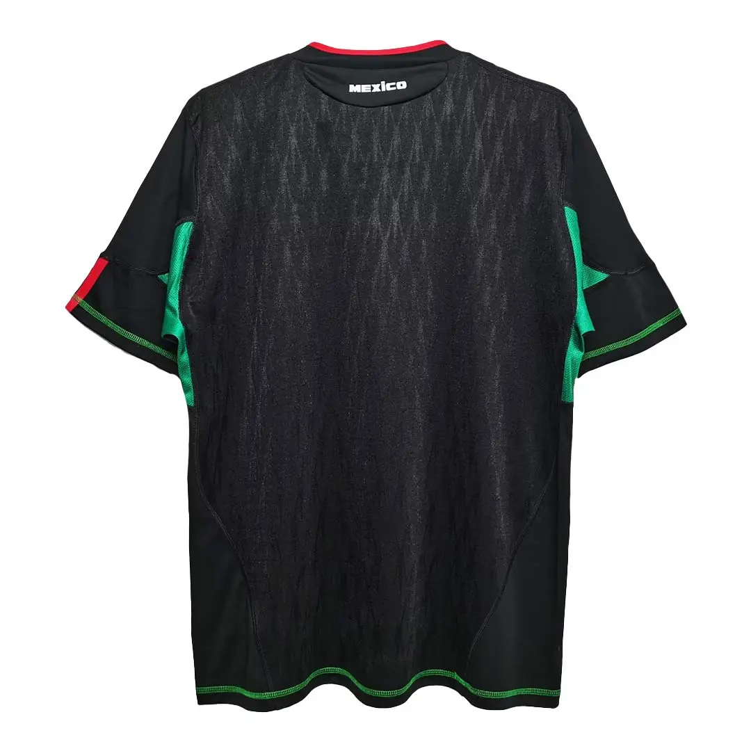 Description about the Mexicojersey: VintageMexicoJersey Away 2010 OUT NOW! This Mexico camiseta futbol away 2010 is worn at 2010 world cup. Hey, did you guys remember what happen at Mexico world cup 2010? Mexico qualified for the 2010 FIFA World Cup, where they were drawn into Group A alongside host South Africa, France and Uruguay. They drew 1–1 against South Africa, defeated France 2–0, and lost 1–0 to Uruguay, and advanced to the round of 16, where they were eliminated following another defeat to Argentina, 1–3. Despite being eliminated, Mexico’s overall performance in this World Cup is still commendable. This is theMexico camiseta futbolaway for Mexico’s 2010 World Cup campaign. Mexico jersey 2010 is dominated by black, complementing with red and green accents, making this more attractive on its appearance. We can see the classic three stripes added on the shoulder.