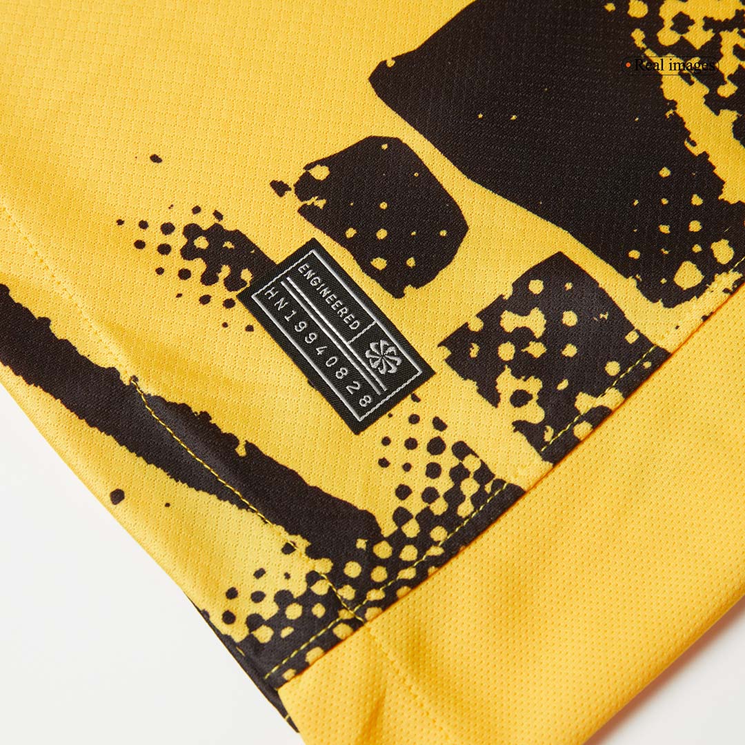 Description about theInter Milanjersey: Inter Milan Third Away Jersey 2024/25 OUT NOW! The Inter Milan jersey 2024/25 is inspired from the team’s 96-97 third Inter Milan jersey by Umbro. Both are designed into yellow color.Inter Milan jerseyhas a yellow base with black details. What’s more, you will be amazed with the collar, it features a double stripe design on the sides, combining with yellow and black.The patterns on this Inter Milan jersey draw inspiration from Milan’s architectural landscape, paying homage to the city’s trailblazing artists and designers. The memorable part of thisInter Milan camiseta futbolis ‘2008’ embedded in the collar.Inter’s women’s team is founded in 2018. The double Swoosh design of thisInter Milan jerseyaims to celebrate the rise of women’s football.