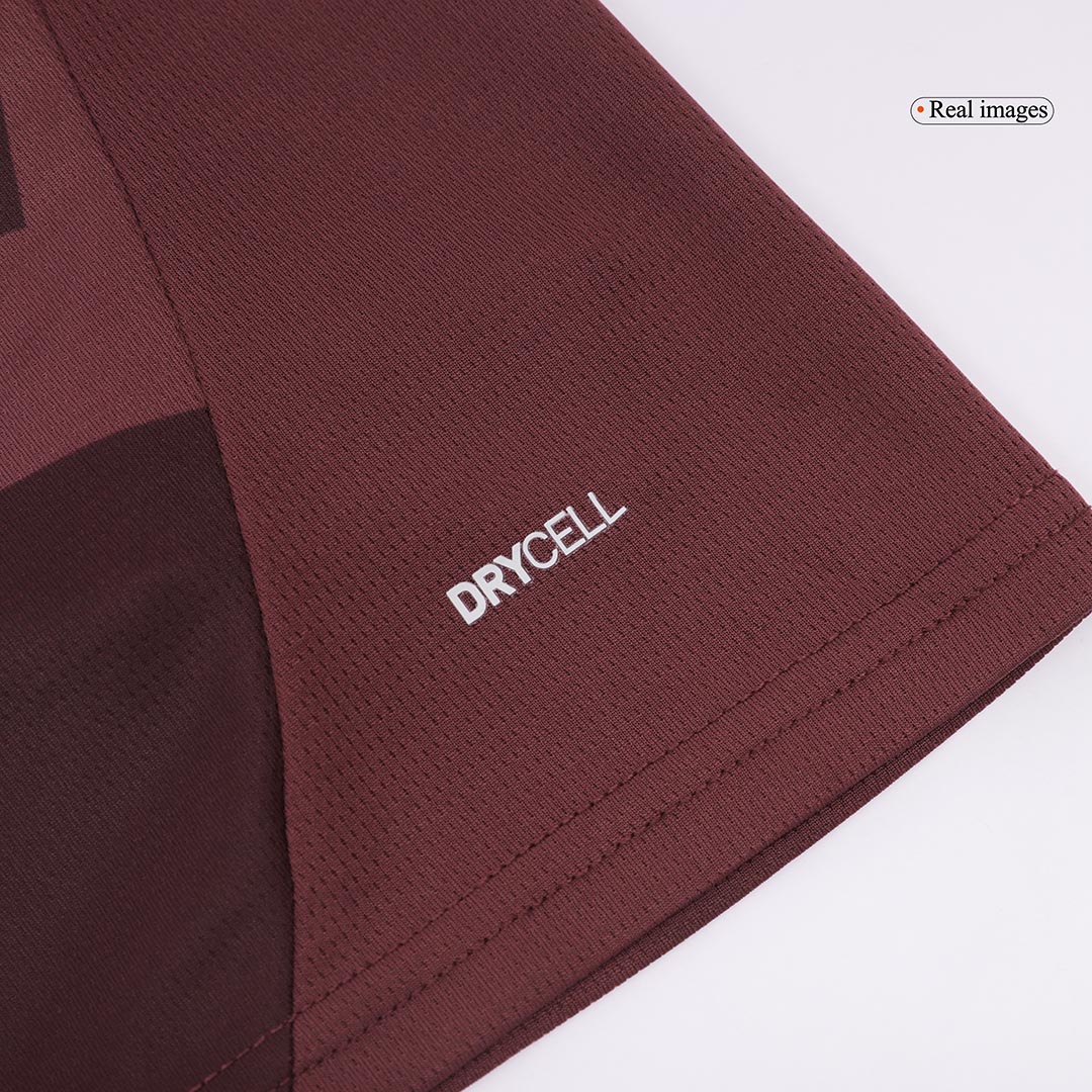 Description about the Manchester City jersey: Manchester City released their burgundy and gold third kit. Umbro’s design of Manchester City’s burgundy away shirt with gold accents in 2012-13 serves as the clear muse for the club’s current third kit. This2024 season’s Manchester City Jersey thirdfeatures a comfortable regular fit, short sleeves, and a V-neck collar. In the cheap 2024/25 iteration of the Manchester City jersey, we reimagined the ship from the Manchester City crest as an intricate all-over graphic print, honoring a symbol that embodies the club’s enduring evolution and spirit.