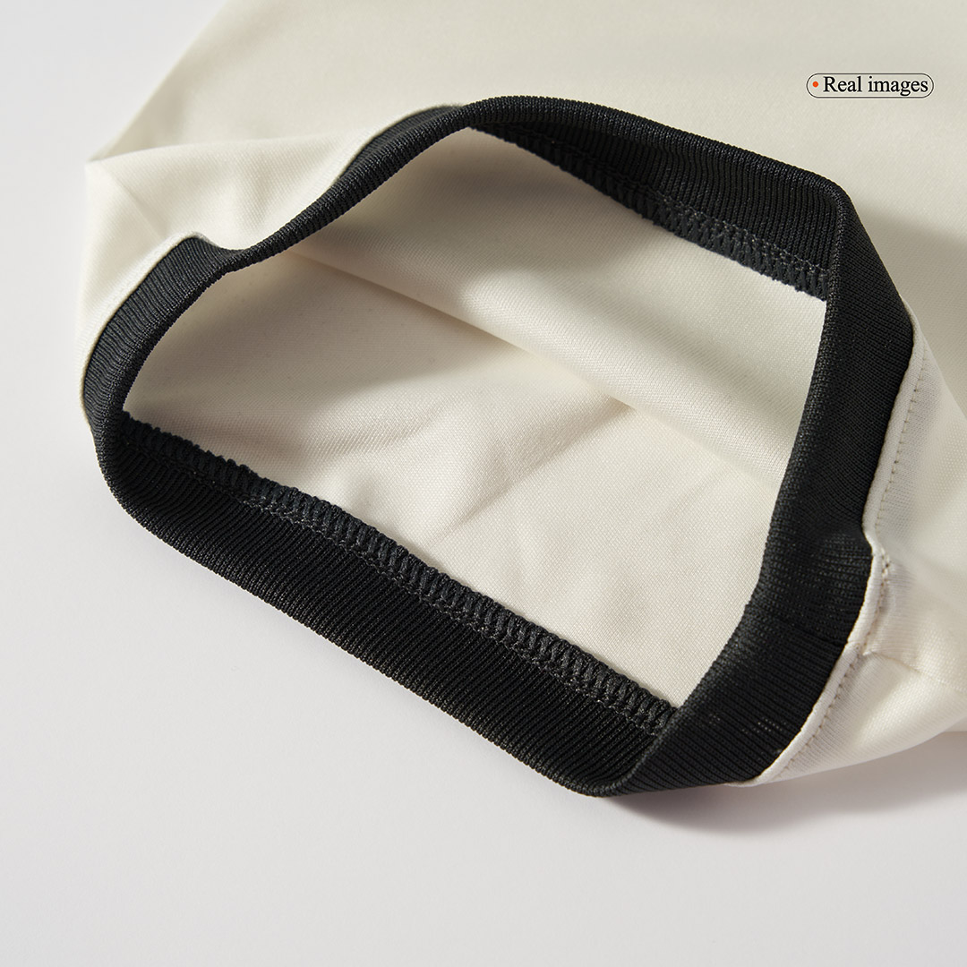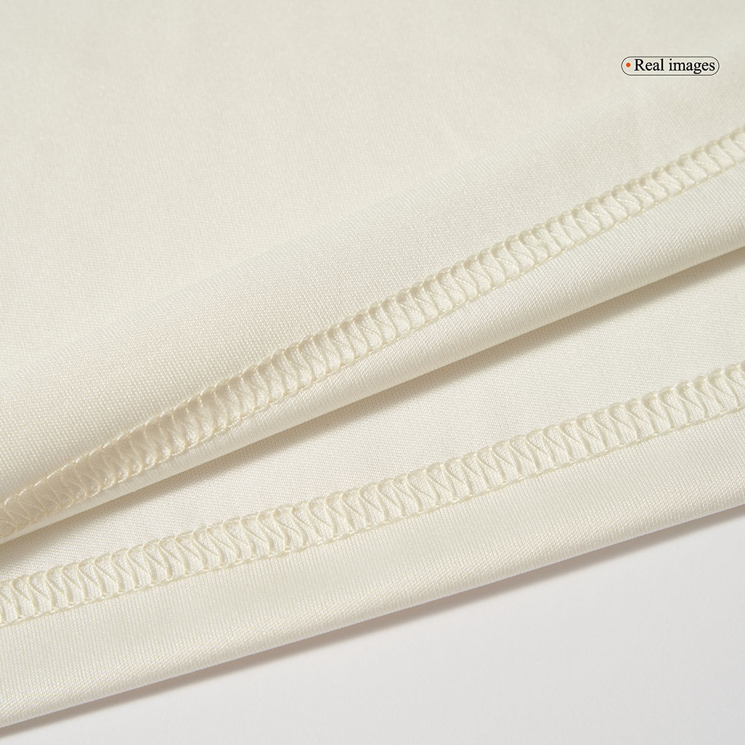 Description about the Manchester United jersey: Thenew Manchester United jersey 2024follows a similar colour scheme to last season’s variation, with white and red featuring prominently. The Trefoil logo is in place on the Manchester United jersey, as opposed to the traditional parallel ‘three stripes’ lines, with leaning into the Vintage aesthetic. The cheap Manchester United jersey has a white base with horizontal red and black stripes across the chest, with a minimalist Red Devil badge. On the back is a tricolor flag with a subtle Manchester United lettering. The design is inspired by the Manchester United jersey away from the late 1990s.